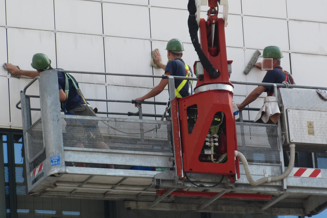 Pulizia e lavaggio delle vetrate esterne ovunque posizionate mediante utilizzo di mezzi di sollevamento quali piattaforme aeree, traslatori, semoventi articolati, ragni, ecc.